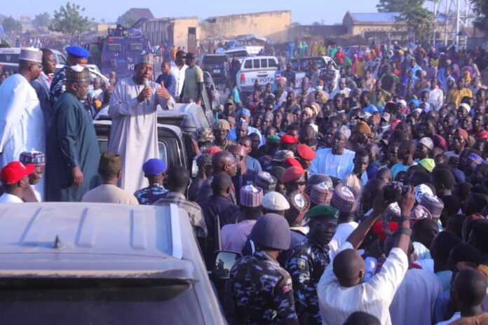 Governor Zulum who is on a working visit to the town on Saturday was greeted by a large and enthusiastic crowd.