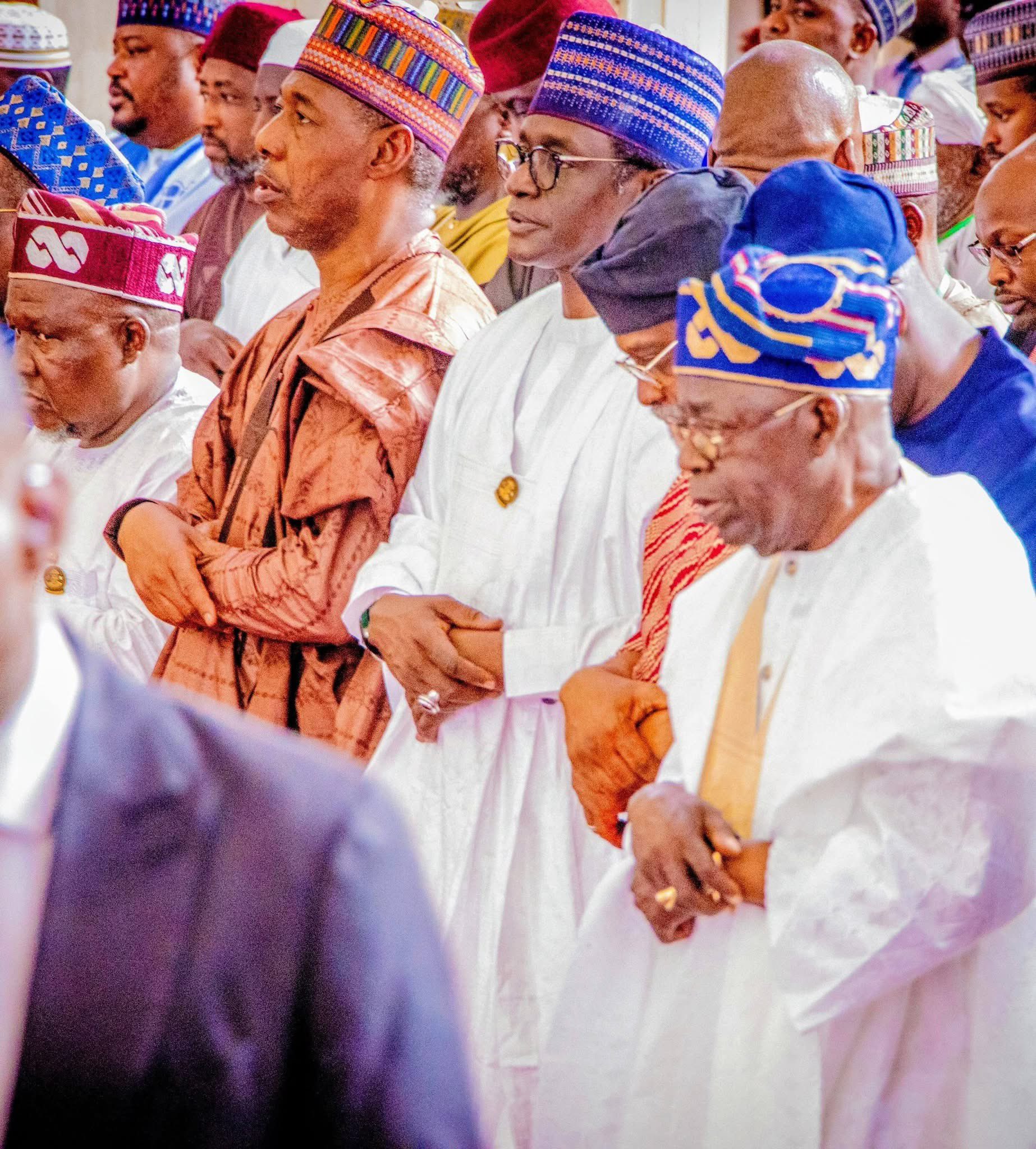 Abuja — In a solemn yet symbolic show of unity, Yobe State Governor, Mai Mala Buni, on Sunday joined Bola Ahmed Tinubu, fellow governors, top government officials, and prominent Nigerians at the National Mosque Abuja for special prayers marking the President’s 74th birthday anniversary.
