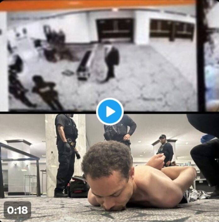 The startling visuals, shared on Trump’s Truth Social platform, captured the tense moment security agents sprang into action as the armed suspect stormed toward a security checkpoint, triggering chaos at the high-profile event.
