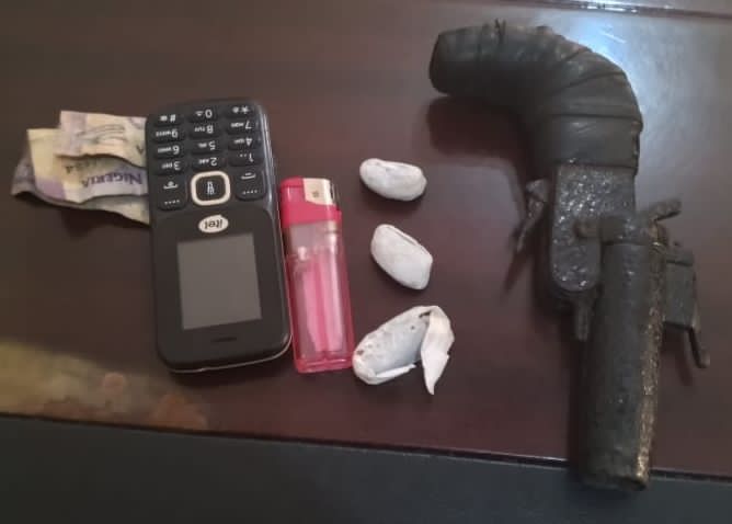 In a swift tactical response, officers pursued and apprehended the fleeing suspect. A search conducted at the point of arrest led to the recovery of a locally fabricated pistol, several wraps of a substance suspected to be Indian hemp, a lighter, and a small mobile phone.