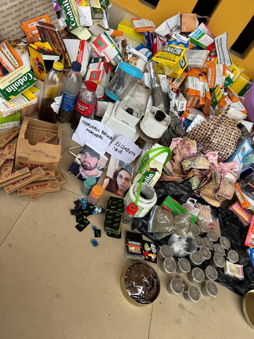 A search of the premises reportedly yielded dried leaves suspected to be Colorado (colos), assorted Tramadol and Codeine tablets, methamphetamine (popularly known as “Ice”), liquid and loud intoxicants, an unknown black powder, an ATM card, several pictures and documents, as well as cash amounting to ₦15,800.