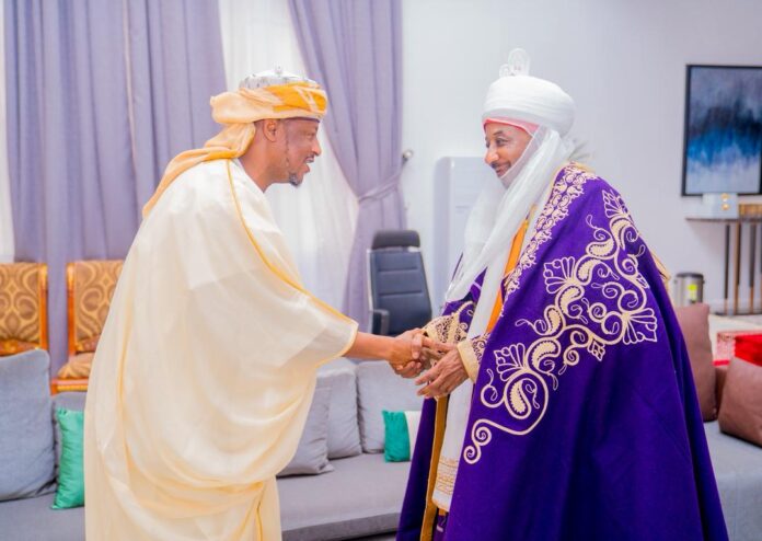 The Emir of Kano, His Highness Muhammadu Sanusi II, alongside the Khalifa of Sheikh Ibrahim Inyass from Kaulaha, Senegal, and other prominent Islamic clerics, paid a courtesy visit to Katsina State Governor, Malam Dikko Umaru Radda, at the Muhammadu Buhari House, Katsina, before they proceeded to the venue of the 40th Annual National Maulud.