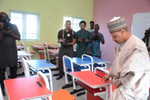 The first point of call was one of the 104 mega schools named after President Bola Ahmed Tinubu which was constructed to provide quality education and a conducive learning environment for children, many of whom have been affected by the over-decade-long insurgency in Borno.