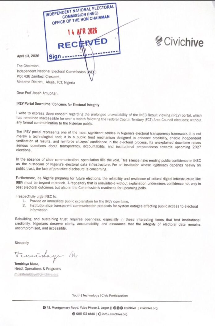 Pressure is mounting on the Independent National Electoral Commission (INEC) to explain a prolonged blackout of its Result Viewing Portal (IREV), which was reportedly restored within 24 hours following a Freedom of Information (FOI) request.