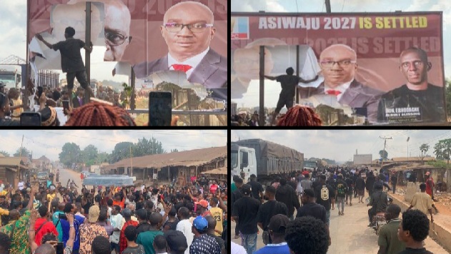 Tension gripped Ekpoma, Edo State, as angry youths flooded the streets to protest the frightening surge in kidnappings, venting their fury by tearing down campaign billboards of the All Progressives Congress.