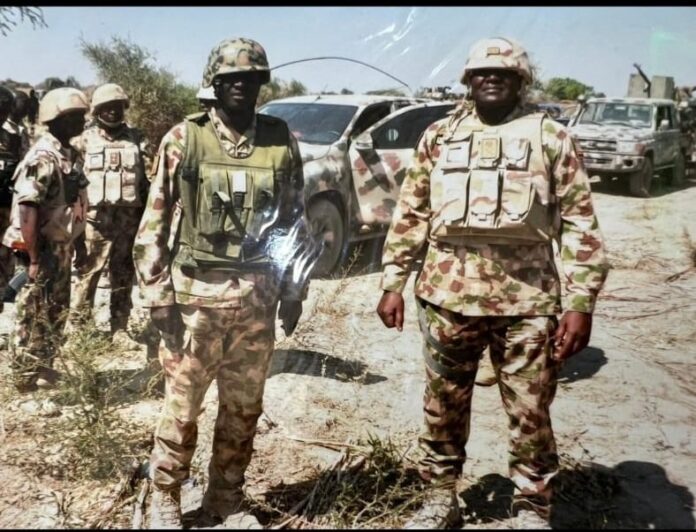 A striking image recently circulated online — showing General Shaibu alongside Major General Abdul Khalipha during the Tura Takai Bango Operation in Sambisa Forest — captures the essence of a leader who commands not from afar, but from the frontlines.
