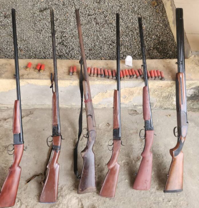 The operation led to the arrest of two male suspects, Etop Otu and Enobong Umoh. A systematic search of the premises uncovered a disturbing cache of weapons, including one double-barrel rifle, five single-barrel rifles, three live cartridges, 22 expended cartridges, and a piece of carbide used for refilling spent ammunition.