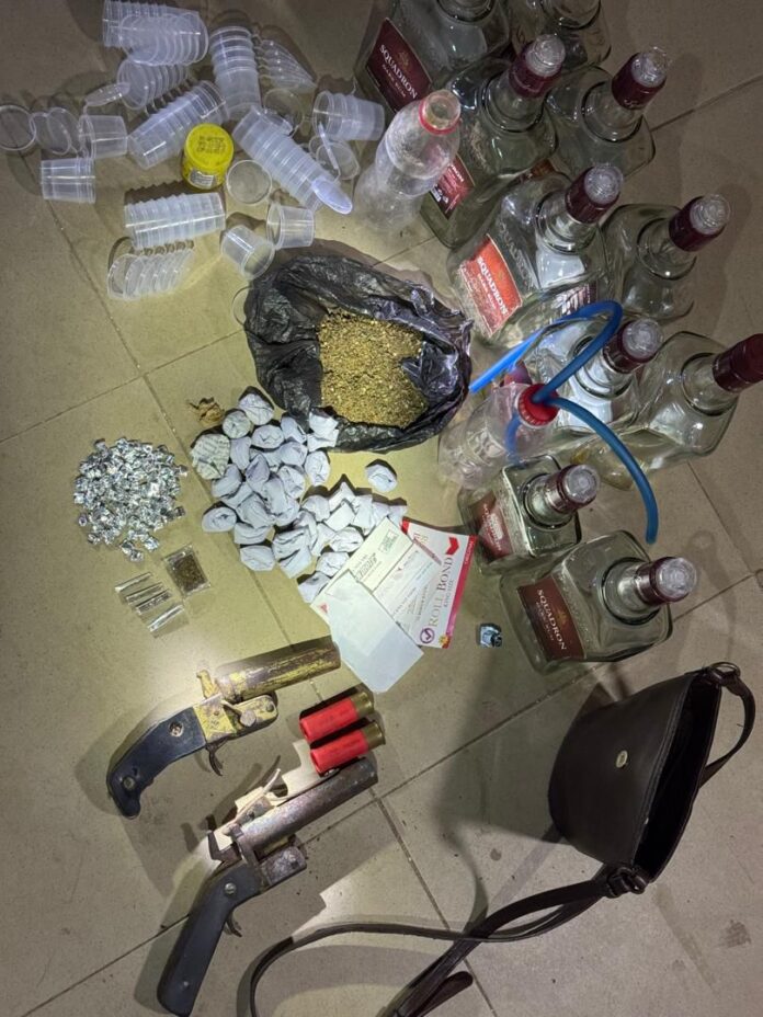Police sources disclosed that the suspects were caught with items linked to illicit drug use, including multiple empty Squadron bottles and quantities of crystal meth, popularly known as “ice.”