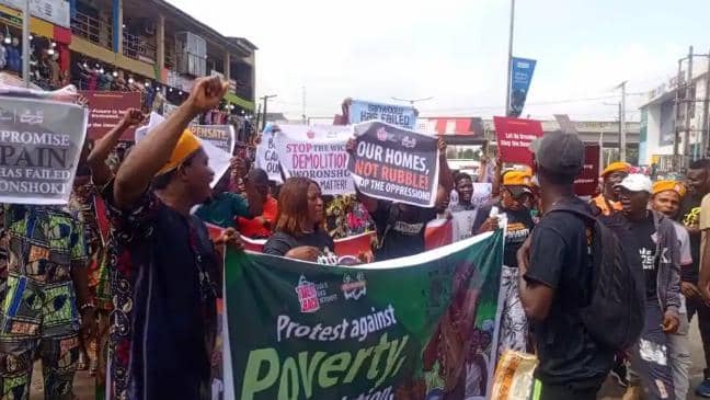 Protesters accused the Lagos State Government of implementing what they described as “anti-poor policies” and demolishing homes without proper notice or alternative housing for displaced residents. Many claimed that the recent demolitions in Oworonshoki had rendered families homeless and deepened the city’s poverty crisis.