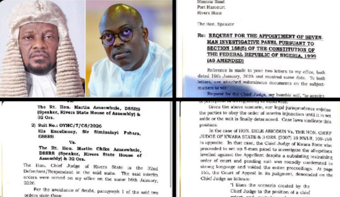 Port Harcourt—In a dramatic twist to the simmering political crisis in Rivers State, the Chief Judge, Justice Chibuzor Simeon Amadi, has declined to constitute a seven-member judicial panel to investigate allegations of gross misconduct against Governor Siminalayi Fubara and his deputy.