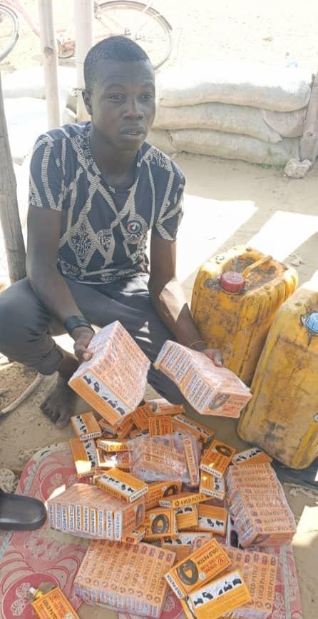 On October 2, troops of the 24 Task Force Brigade, working in collaboration with members of the Civilian Joint Task Force (CJTF) and local hunters, intercepted 18-year-old Abba Wakil, an indigene of Wulgo Village, with two jerricans of condemned engine oil and 100 pieces of quick patch.