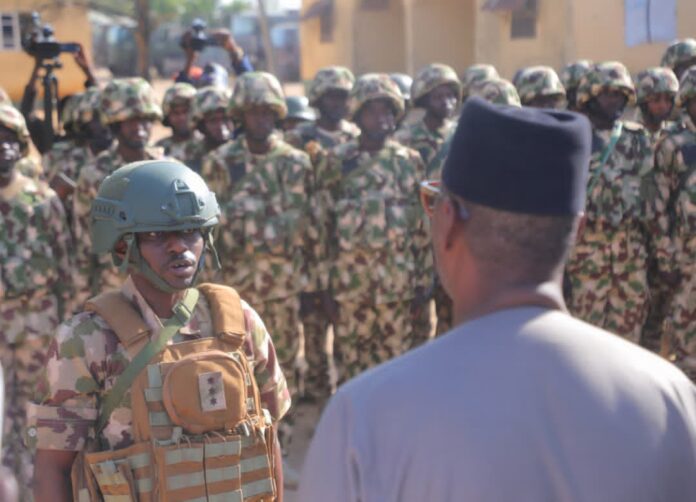 The governor, speaking at a front-line military base in Damboa, sympathised deeply with the officers and soldiers, acknowledging the immense personal sacrifice and hard work they put in daily. He commended what he described as their “giant effort and supreme sacrifice” in the ongoing battle to secure Borno State and protect civilians from the threats of Boko Haram and Islamic State West Africa Province (ISWAP).